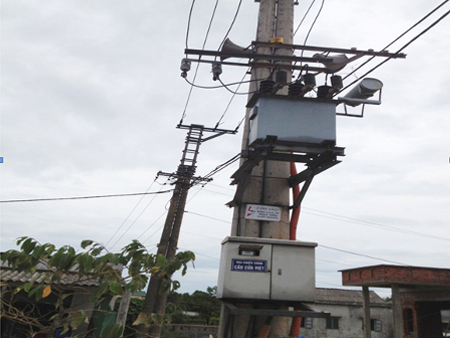 Thiết bị cao áp: Dao cách ly, dao phụ tải, chóng sét van, có cầu chì tự rơi xuống mặt đất, cầu chì này có tác dụng đo đếm hạ thế hoặc trung thế.